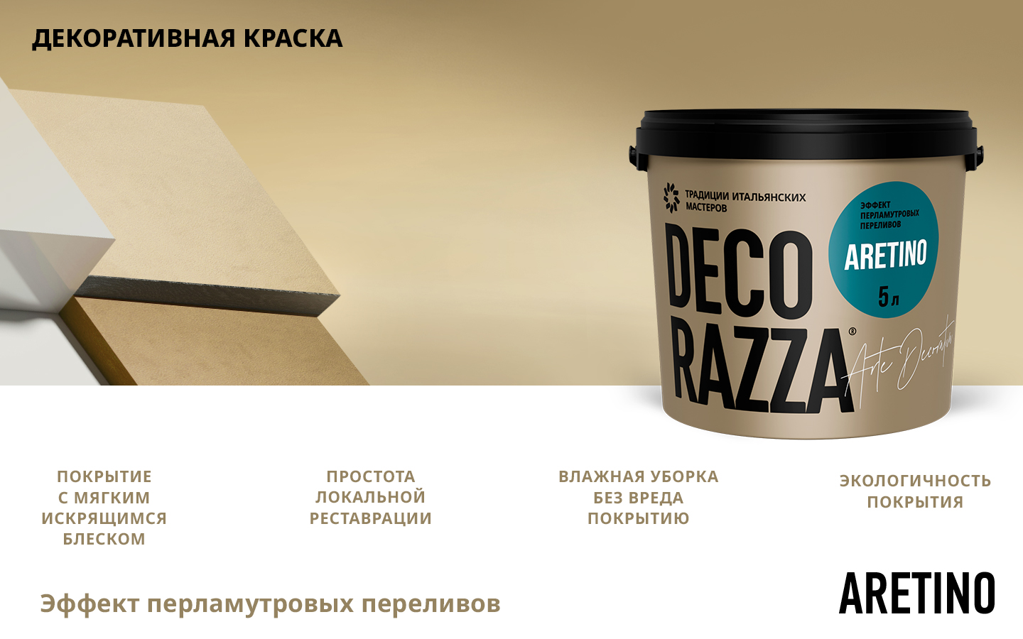 Купите у нас: Декоративная краска ARETINO - Высококачественное декоративное покрытие с перламутровым блеском от завода: Decorazza!