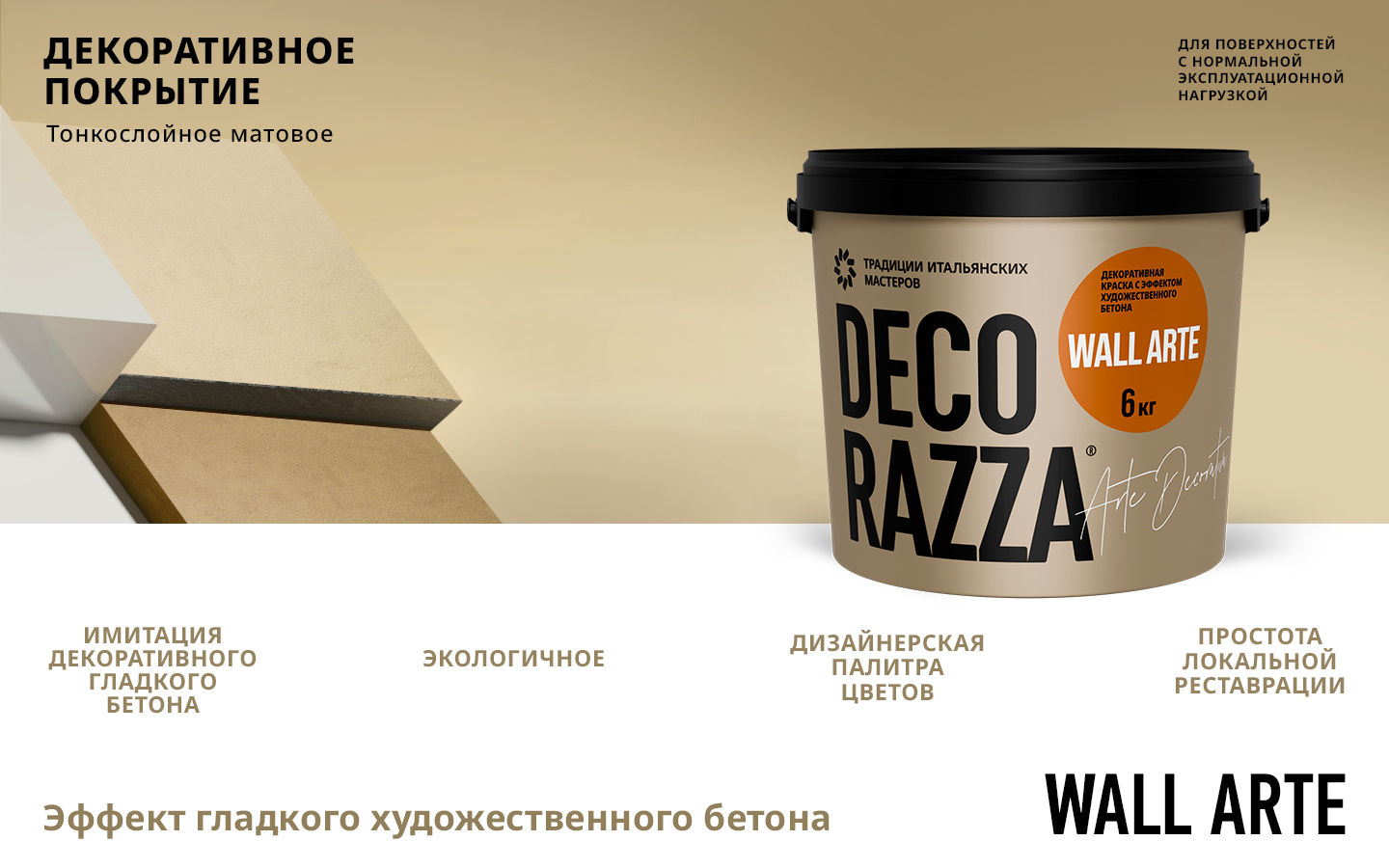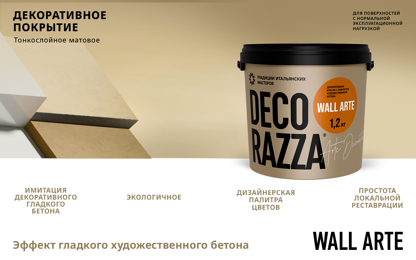 Купите у нас: Декоративное покрытие с эффектом бетона WALL ARTE - Декоративное покрытие DECORAZZA WALL ARTE — это непревзойденное решение для тех, кто стремится внести в свой интерьер элементы современного дизайна с неповторимым эффектом бетона. Это высококачественная и премиальная продукция, которая позволяет создать аутентичную атмосферу индустриального стиля, не прибегая к сложным строительным работам. Благодаря своей текстурированной поверхности, DECORAZZA WALL ARTE оживляет стены, добавляя глубину и фактуру, идеально сочетаясь как с современным, так и с классическим дизайном. Уникальность покрытия заключается в его способности гармонично вписываться в любой интерьер, подчеркивая стиль и изысканность пространства. от завода: Decorazza!