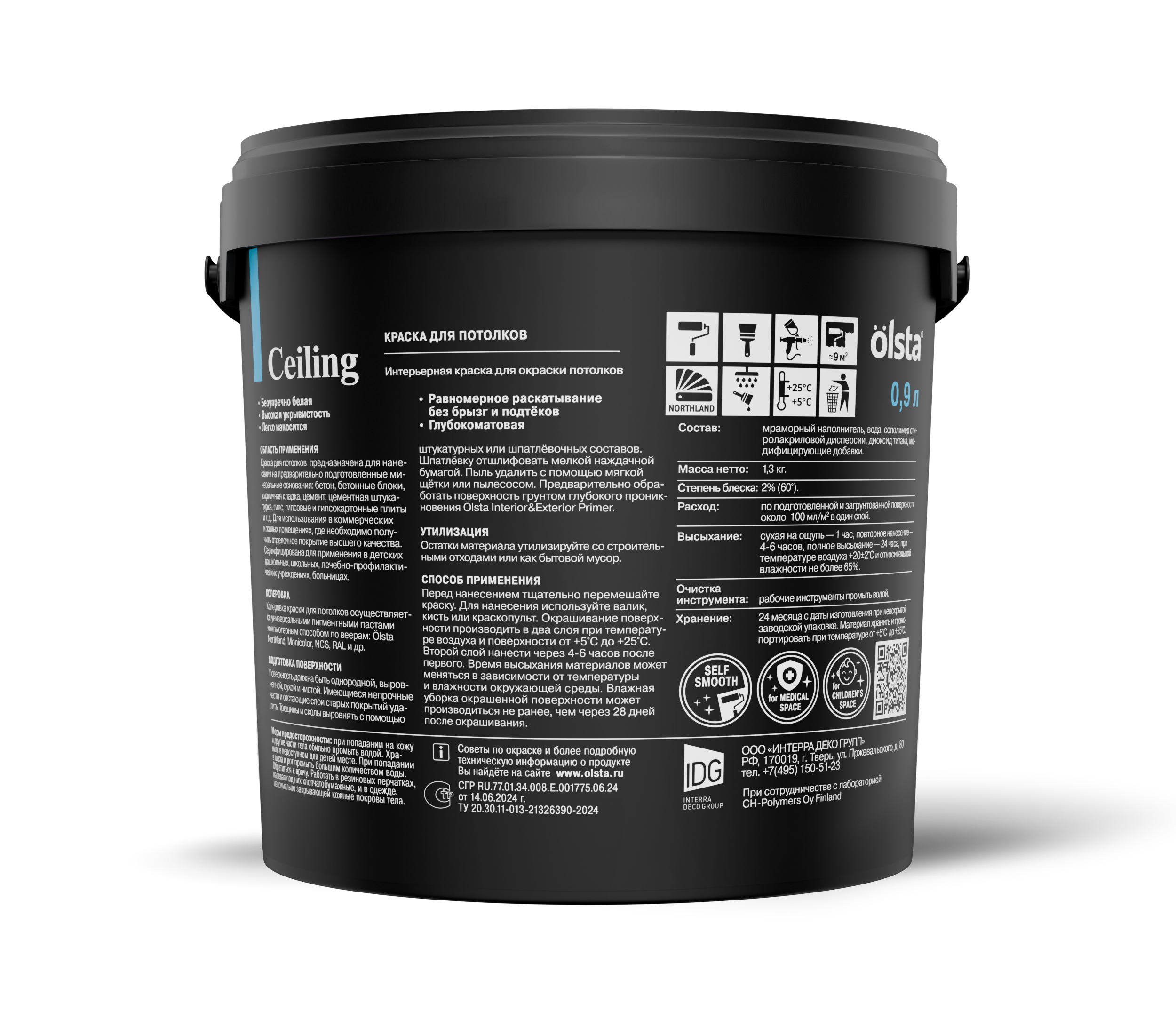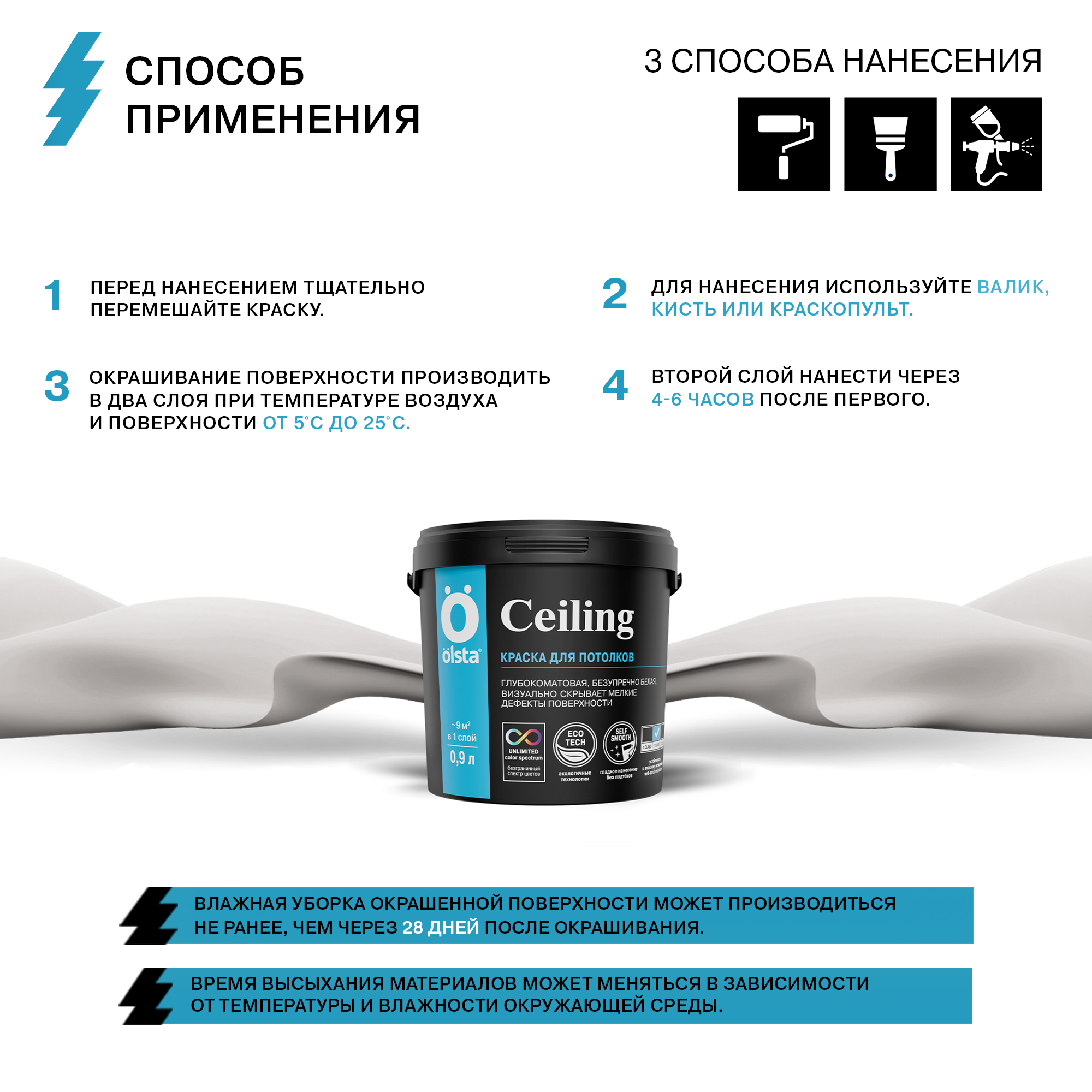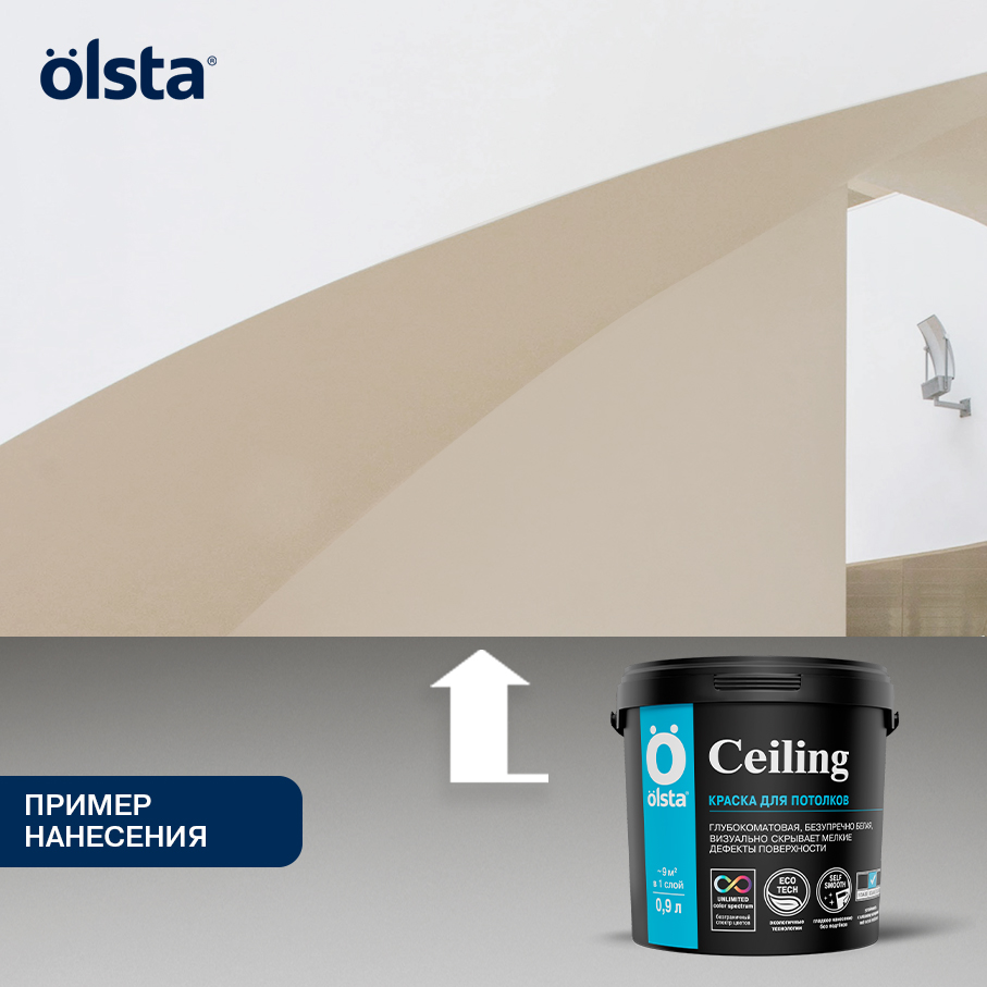 Купите у нас: Краска для потолков Ceiling - Высокоурывистая самогрунтующаяся глубокоматовая краска для потолка от завода: OLSTA!