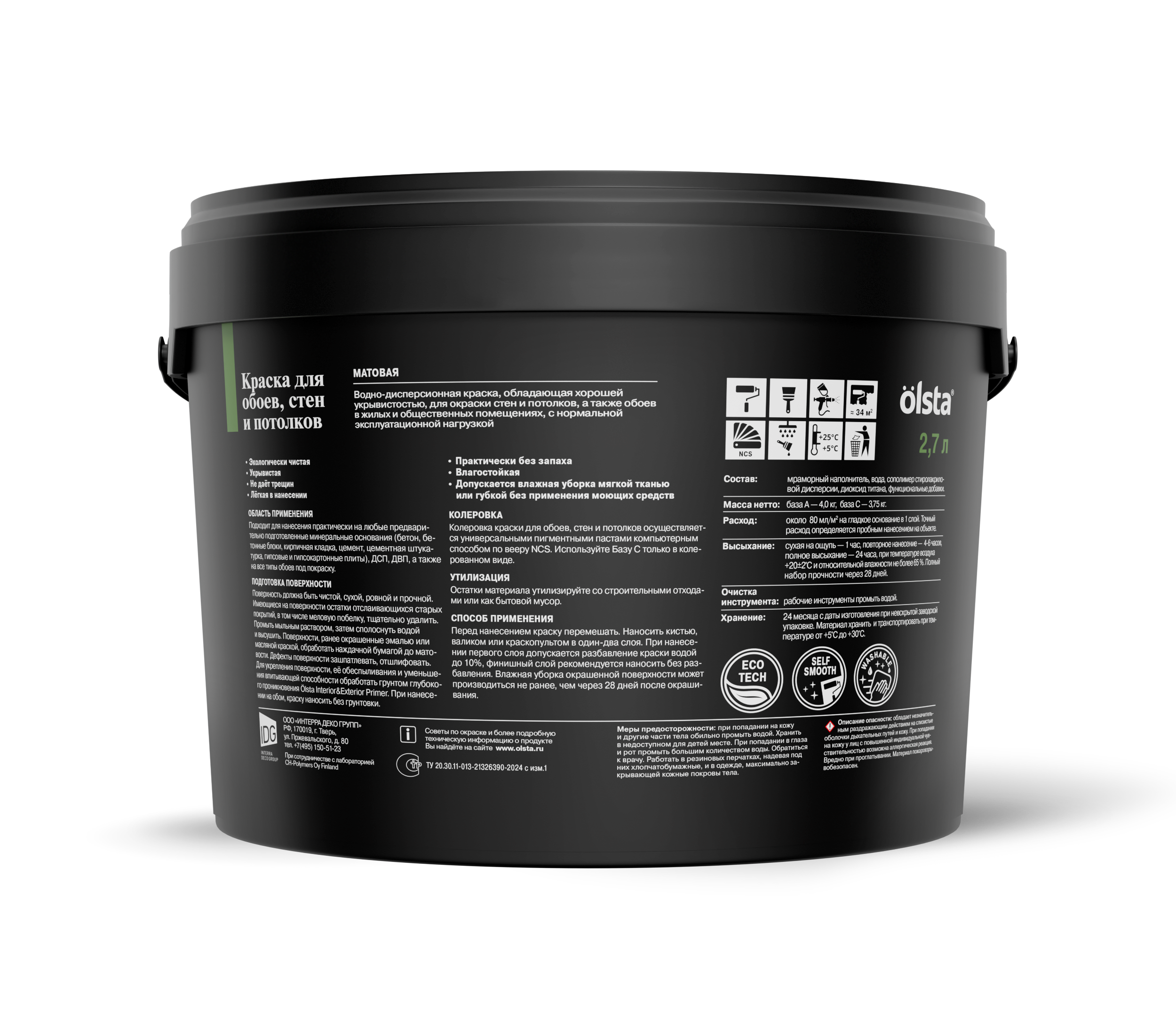 Купите у нас: Краска для стен, обоев и потолков - Водно-дисперсионная краска, обладающая хорошей укрывистостью, предназначена для внутренней окраски стен и потолков, а также обоев в жилых и общественных помещениях. от завода: OLSTA!