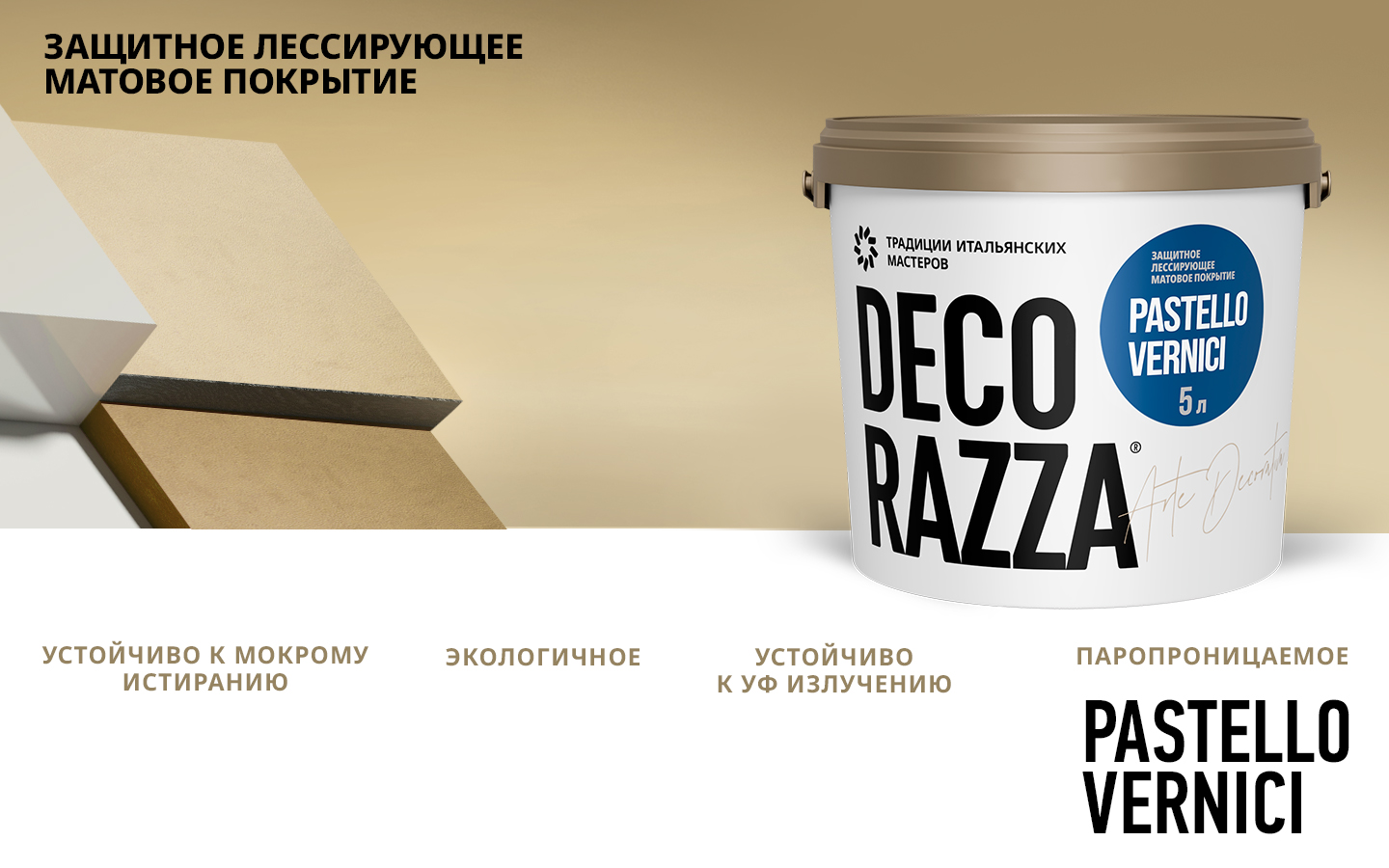 Купите у нас: Лессировка матовая PASTELLO VERNICI - Защитная декоративная лессировка для фасадов и интерьеров от завода: Decorazza!