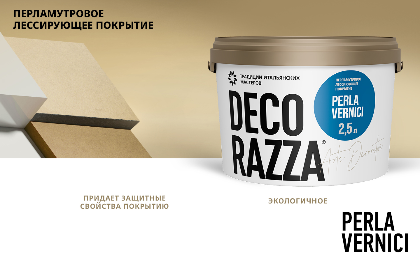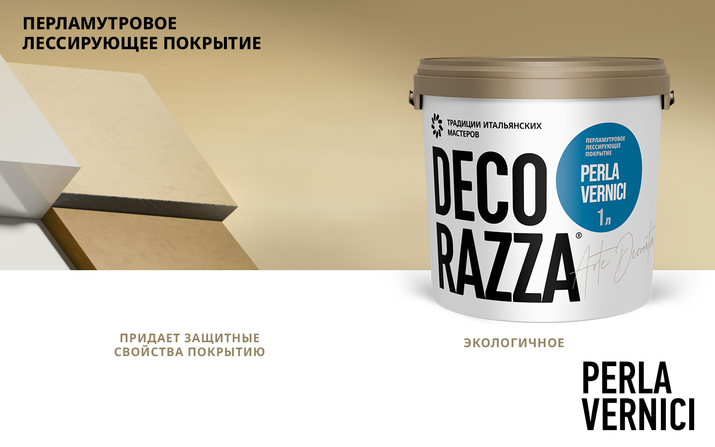 Купите у нас: Лессировка перламутровая PERLA VERNICI - Финишное лессирующее покрытие для декоративных материалов от завода: Decorazza!
