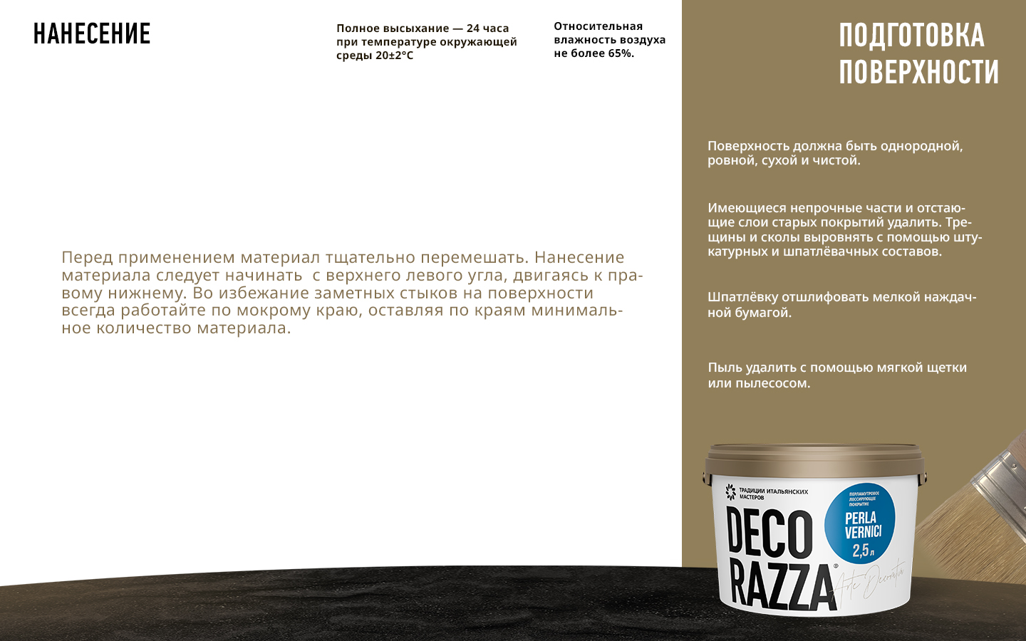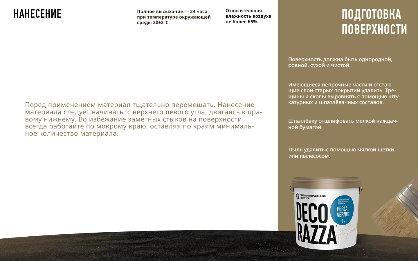 2. Перед нанесением материал Perla Vernici аккуратно перемешайте вручную. Материал готов к нанесению.