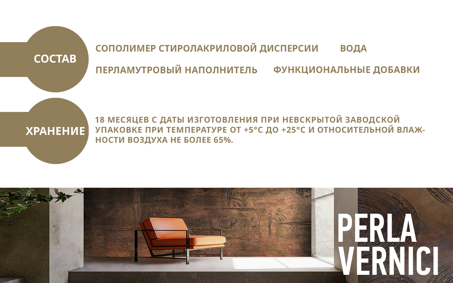 Перламутровый лак Perla Vernici предназначен для придания защитных характеристик покрытиям, созданным с использованием материалов Decorazza. Кроме защиты от внешних воздействий, он также улучшает декоративные свойства сформированного эффекта, подчеркивая глубину и выразительность выбранного цвета. Полупрозрачный материал может колероваться в более чем 20 цветов по каталогу, от мягкого пудрового до насыщенного красно-коричневого. Продукт подходит для лессировки, а также самостоятельного применения (наносится методом тампонирования).