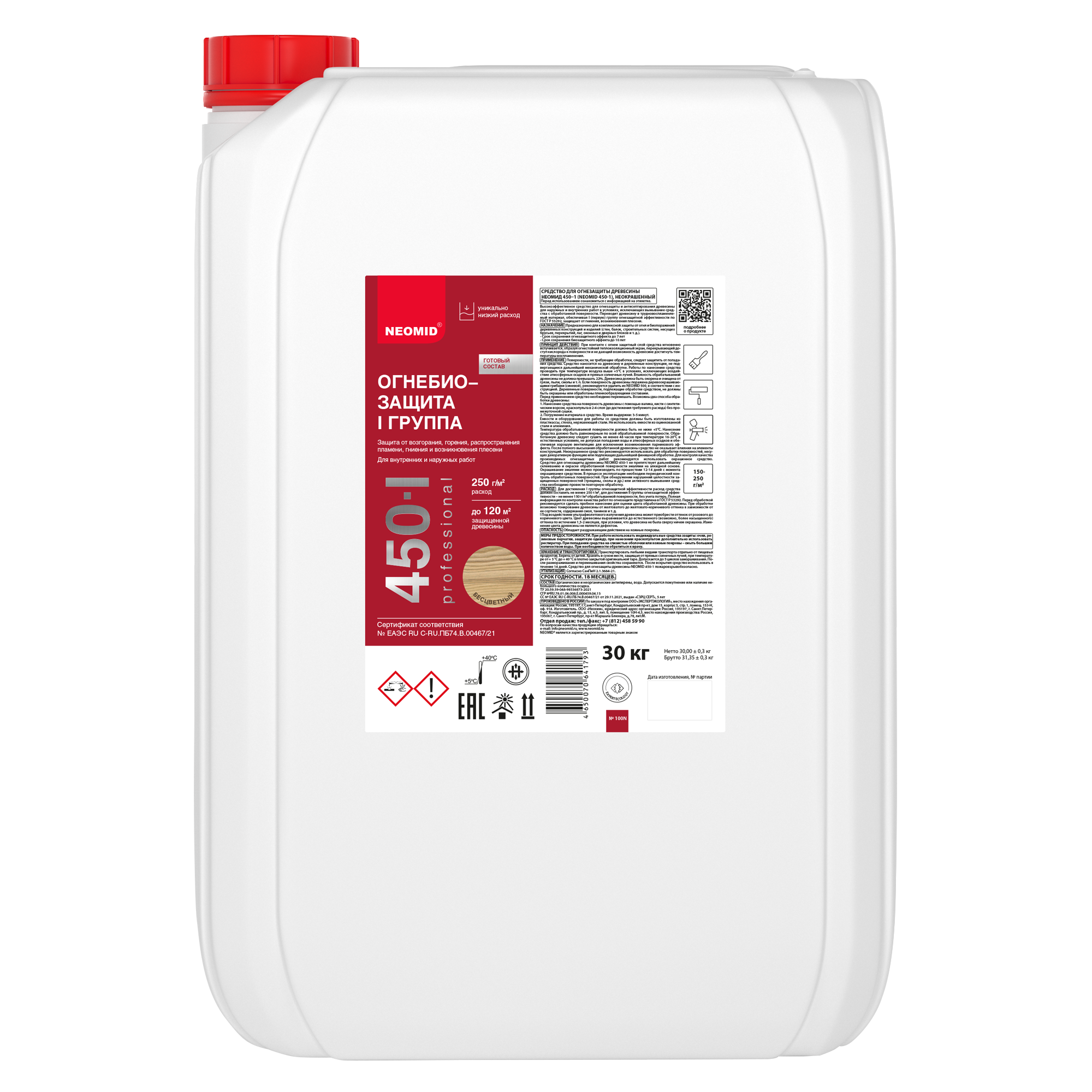 Купите у нас: NEOMID 450 огнебиозащитный состав 1 группа - Состав специального назначения для комплексной защиты от огня и биопоражений деревянных конструкций и изделий. Обеспечивает I группу огнезащитной эффективности по ГОСТ Р 53292-2009 от завода: Neomid!