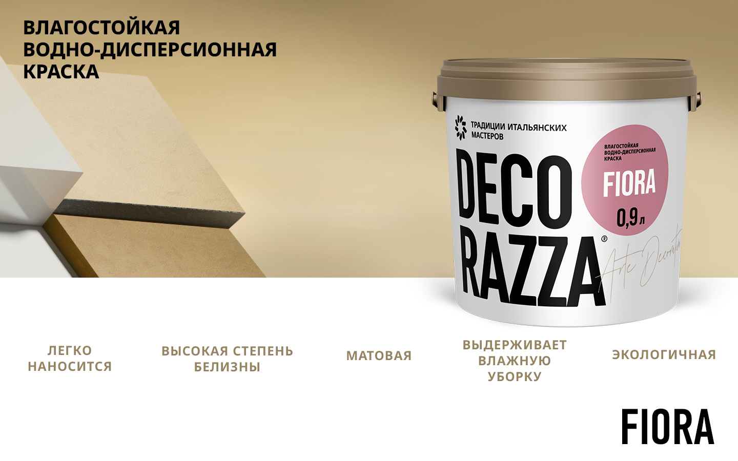 Купите у нас: Влагостойкая интерьерная краска FIORA - Износостойкая краска для помещений с высокой эксплуатационной нагрузкой от завода: Decorazza!